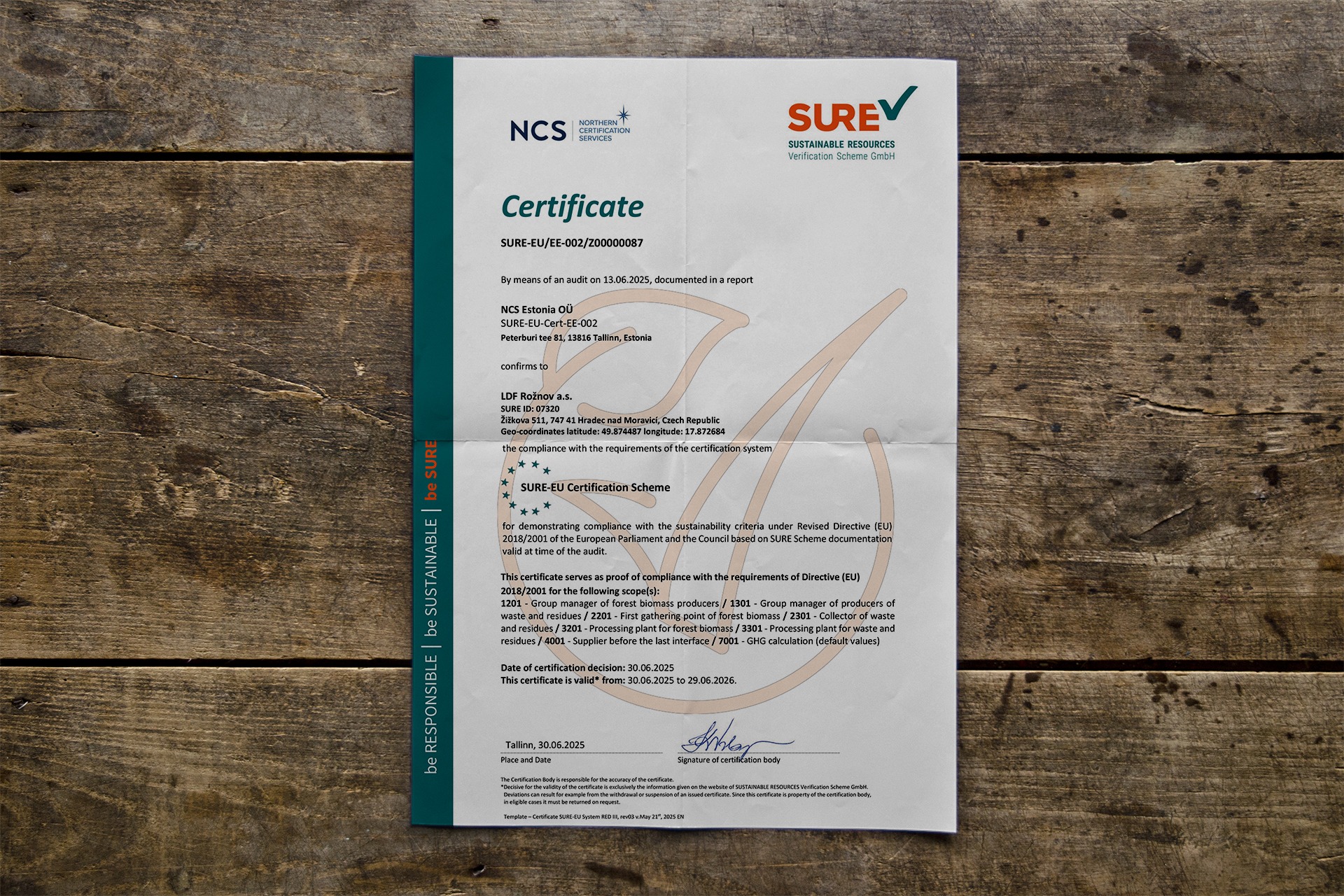 Společnost LDF Rožnov je držitelem certifikátu SURE.